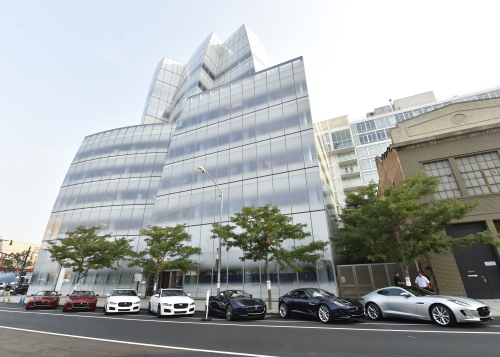 Jaguar vehicles on display outside of the IAC building in New York City, where Jaguar North America announced that the brand will target the heart of the luxury marketplace with an expanded line-up, new pricing strategy, and the introduction of Jaguar EliteCare ownership package with best-in-class coverage, on September 3, 2015.