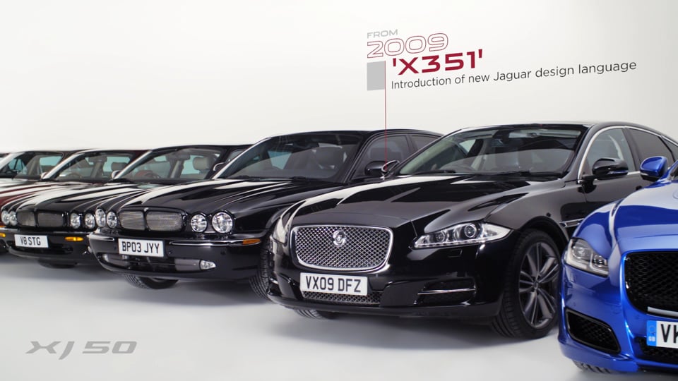 Pour marquer cet anniversaire, la XJ50 se présente avec toute une série de particularités qui distinguent son extérieur, comme des badges avant et arrière, des boucliers avant et arrière Autobiography, une calandre noire laquée et des jantes de 20 pouces adoptant une finition spécifique. Quatre teintes extérieures seront disponibles : Fuji White, Santorini Black, Loire Blue et Rosello Red.