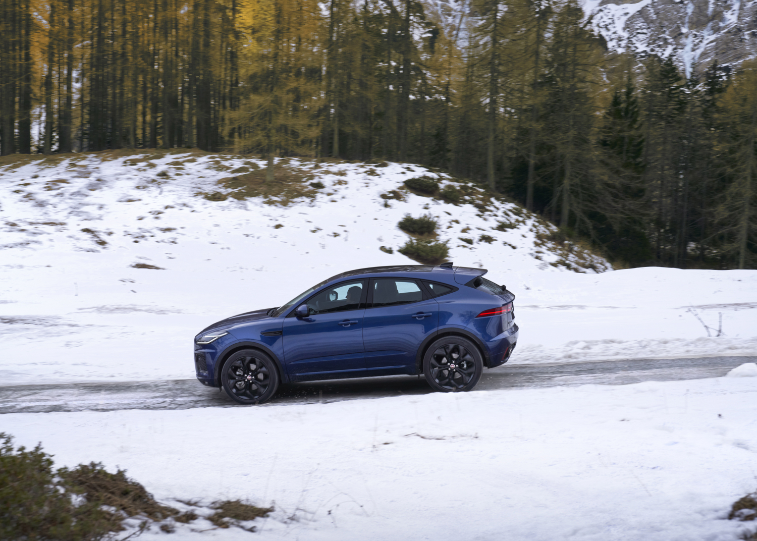 La nouvelle transmission intégrale de la E‑PACE fait appel à la technologie “Standard Driveline” de deuxième génération, qui répartit automatiquement le couple entre les roues avant et arrière pour optimiser la motricité.