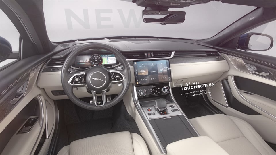 - Constamment connectée: De nombreuses technologies embarquées, telles que Pivi Pro, le tout dernier système dual‑sim d’info divertissement de Jaguar, disponible sur le tout nouvel écran tactile incurvé de 11,4 pouces